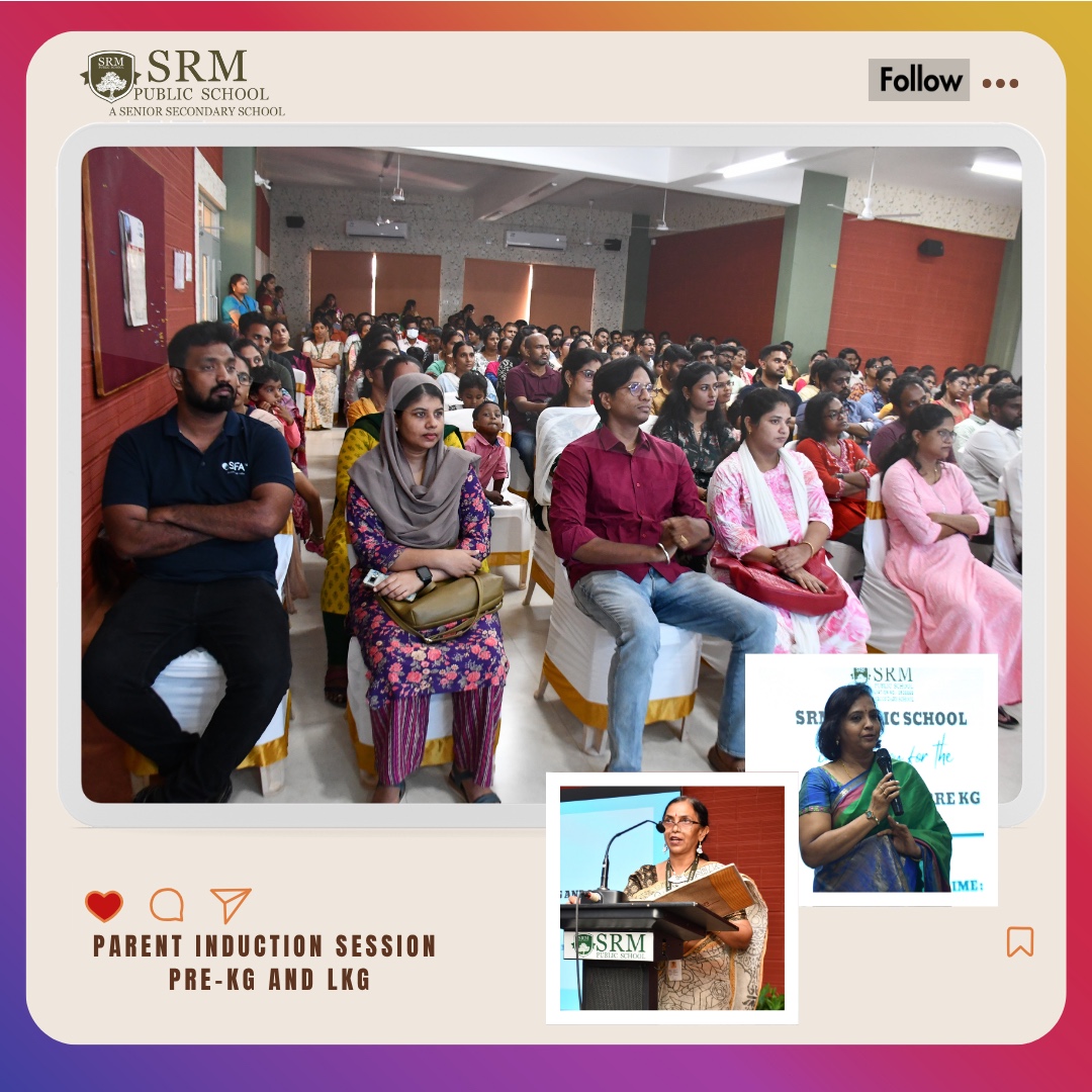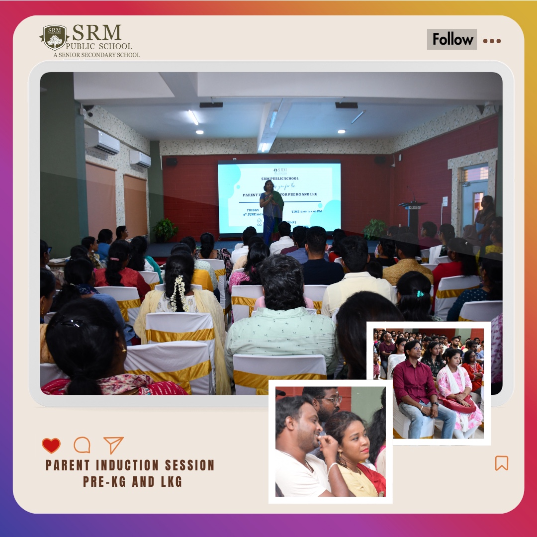 The Pre-KG and LKG Parent Induction Program was held on June 6, 2025, at Easwari Hall, warmly welcoming new families into the SRM community. The session highlighted the school’s vision, child-centered teaching methods, daily routines, and the vital role of parental involvement.
