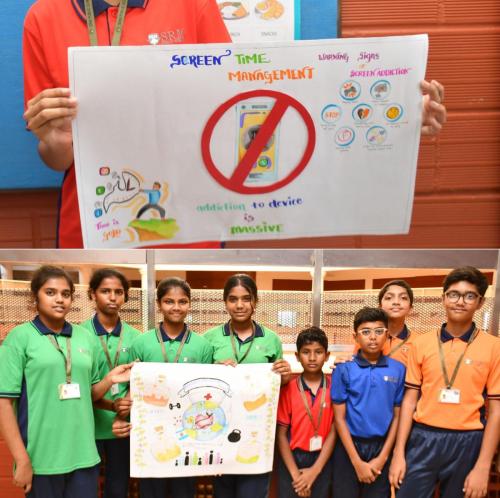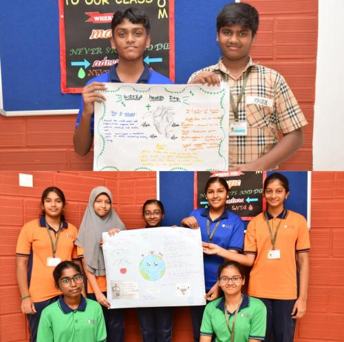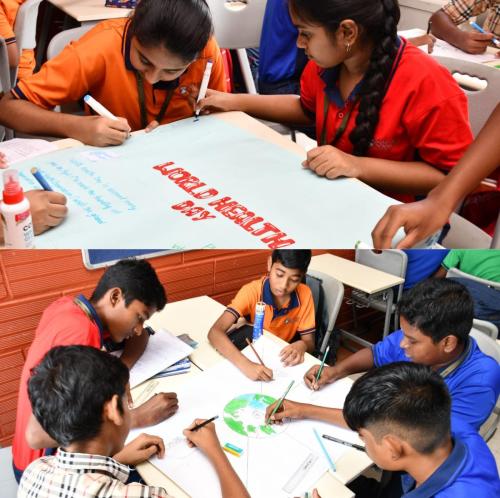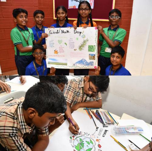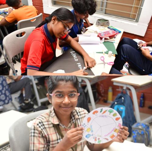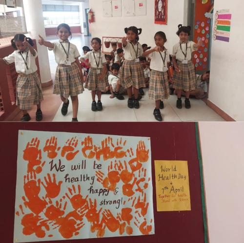 Our Students celebrated “World Health Day” with the theme “My Health,My Responsibility” through engaging activities such as Red Light–Green Light to identify healthy and unhealthy habits, handprint pledges, exploring healthy plates from different states and landforms of India, along with poster making and short speeches across classes.