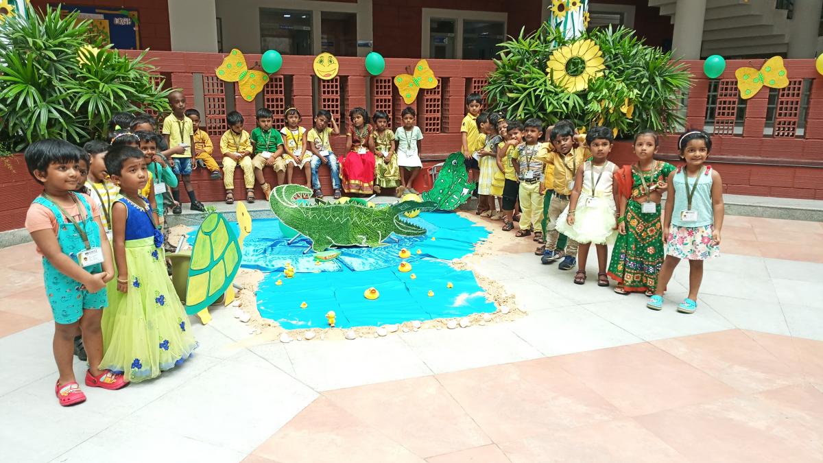Yellow the colour of sunshine, joy & happiness, whereas Green symbolizing nature, growth, spring and harmony are reinforced to our tiny tots through colourful displays in and around phase 1 courtyard and the respective classrooms.