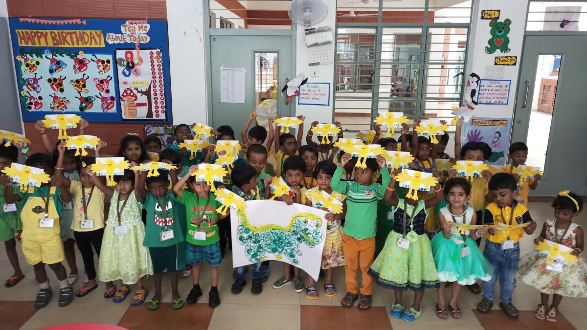 Teachers had planned several activities for their children to identify and recognize the colours, and they were thrilled to make their “Take Aways” such as corn, mango, chick, butterfly, lemon & duck to their respective homes to showcase the talent & learning.
